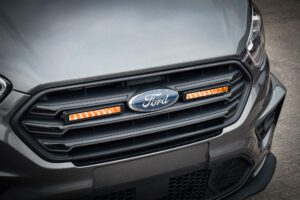 Stealth led lights shining high performance lighting down a country road at night
